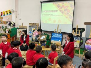Từ những nguyên vật liệu quen thuộc, gần gũi, workshop đã mở ra cho các con một không gian nghệ thuật đầy cảm hứng, nơi trẻ được khám phá, sáng tạo và thể hiện cảm xúc qua từng mảng màu, hình khối. Đặc biệt, hoạt động có sự hiện diện và đồng hành của quý phụ huynh, góp phần tạo nên những khoảnh khắc kết nối ấm áp giữa gia đình – nhà trường – trẻ nhỏ .